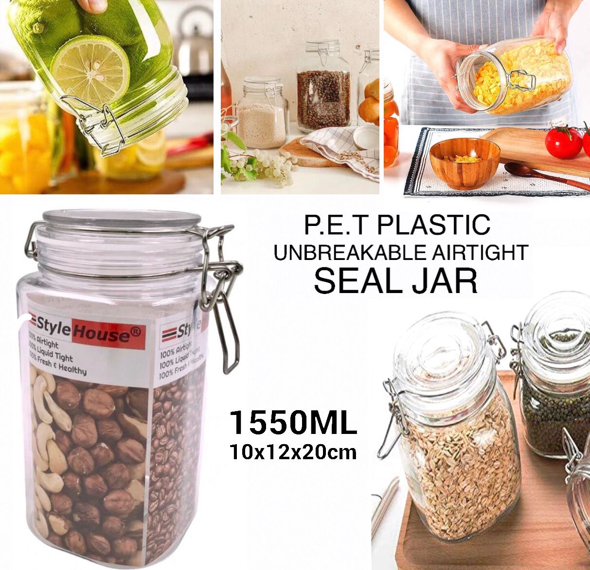 - Unbreakable Airtight Seal PET Jar